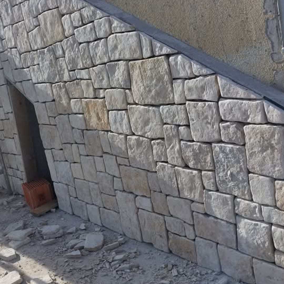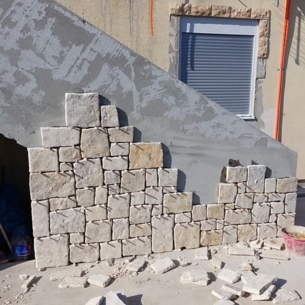Der LADERA ANTIK ist eine spezielle Variante des Benkovac-Steins, die durch das Brechen klassischer Benkovac-Platten in teils regelmäßige Formen gewonnen wird. Anschließend wird der Stein einem „Trommelprozess“ unterzogen, um scharfe Kanten zu entfernen und eine natürliche, sandgestrahlte Optik zu erzeugen. Diese Bearbeitung verleiht dem Stein eine rustikale, authentische Ästhetik, die an traditionelle dalmatinische Häuser erinnert.